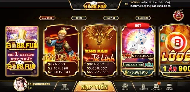 Nếu bạn đang tìm kiếm một sân chơi cá cược nổ hũ chất lượng, đẳng cấp, thì bạn không nên bỏ lỡ Bo88 Fun | Bo 88. Đây là một cổng game đang nhận được lời khen của rất nhiều dân chơi cao thủ. Cùng game đổi thưởng – Topdoithuong xem một số đánh giá sau đây về cổng game này nhé.