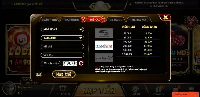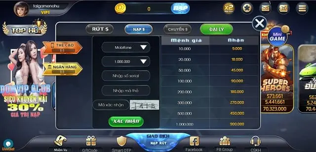 Hiện tại, cổng game áp dụng tỷ lệ chuyển đổi 100 ăn 90 với tiền nạp và 1 đổi 1 đối với tiền rút.