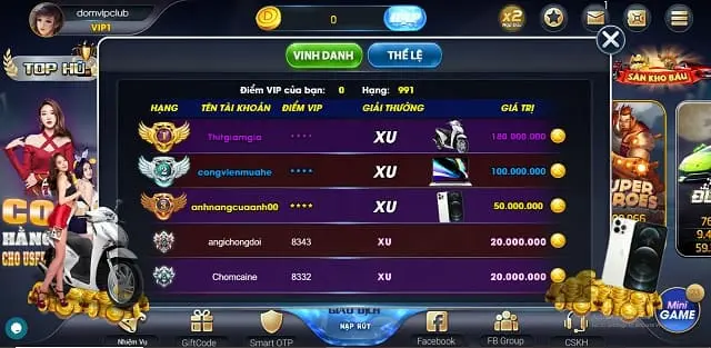 Mỗi tối, cổng game sẽ livestream phát quà cho anh em like và chia sẻ cổng game tới 10 hội nhóm trên facebook. Có ngay quà liền tay vào tài khoản sau 5 phút khi đăng ảnh thắng game trên group.