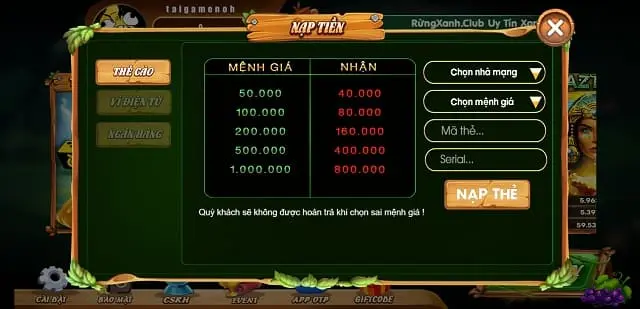 Nạp rút tiền nhanh chóng tại game Rungxanh